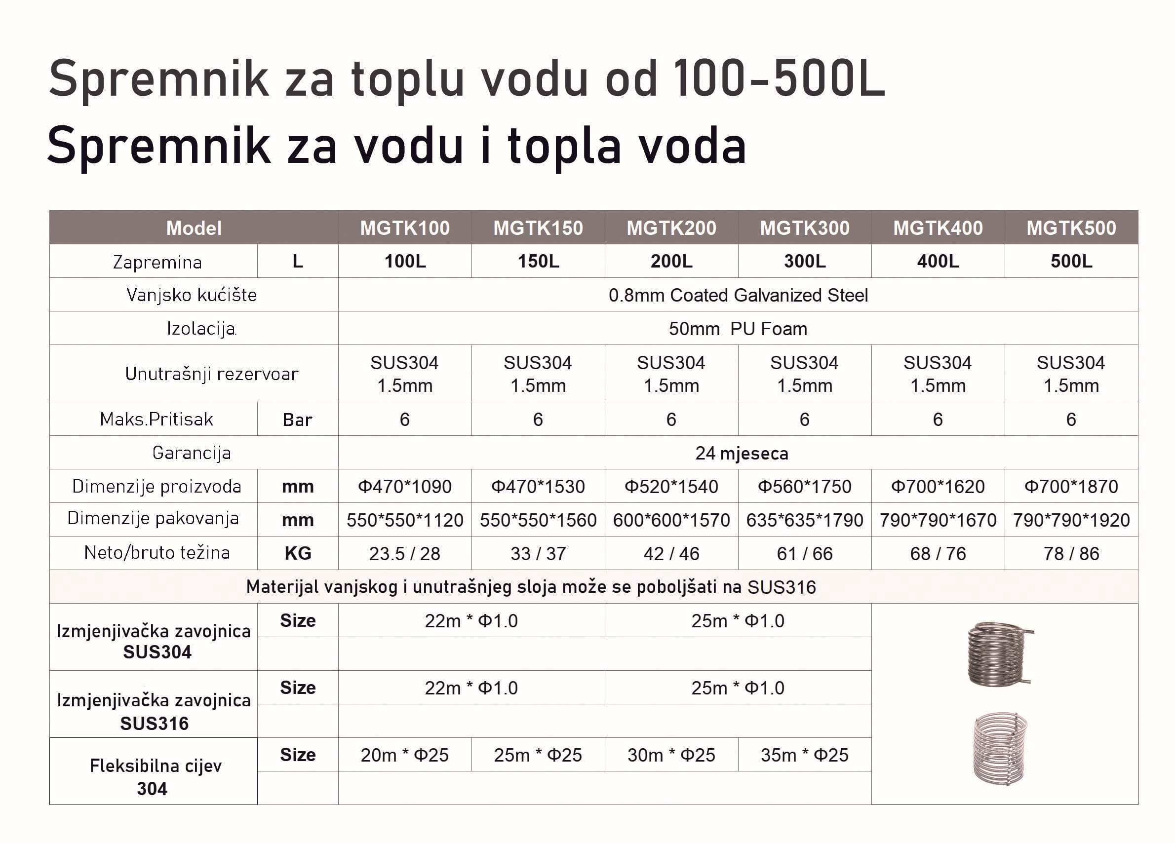 - Dostupni u varijantama od 200L, 300L i 500L.